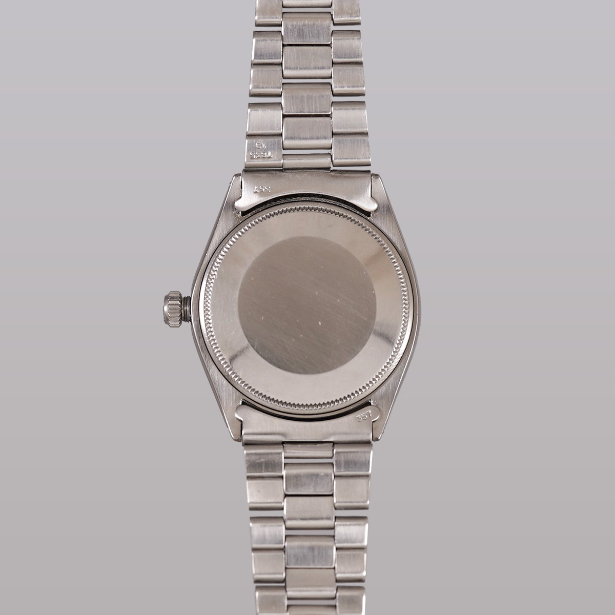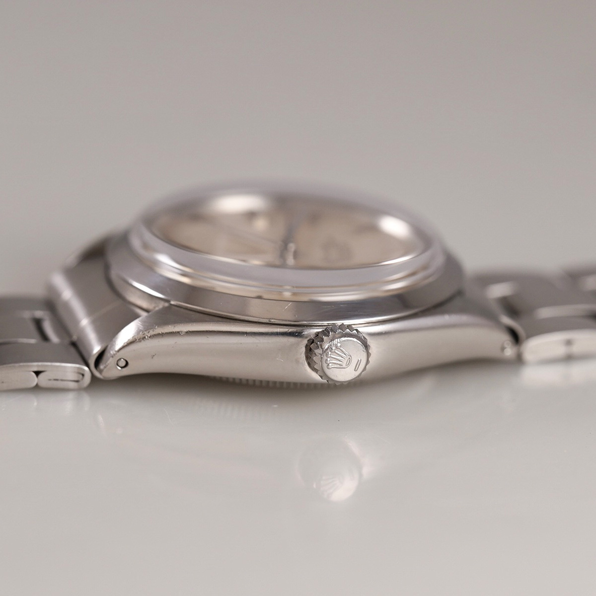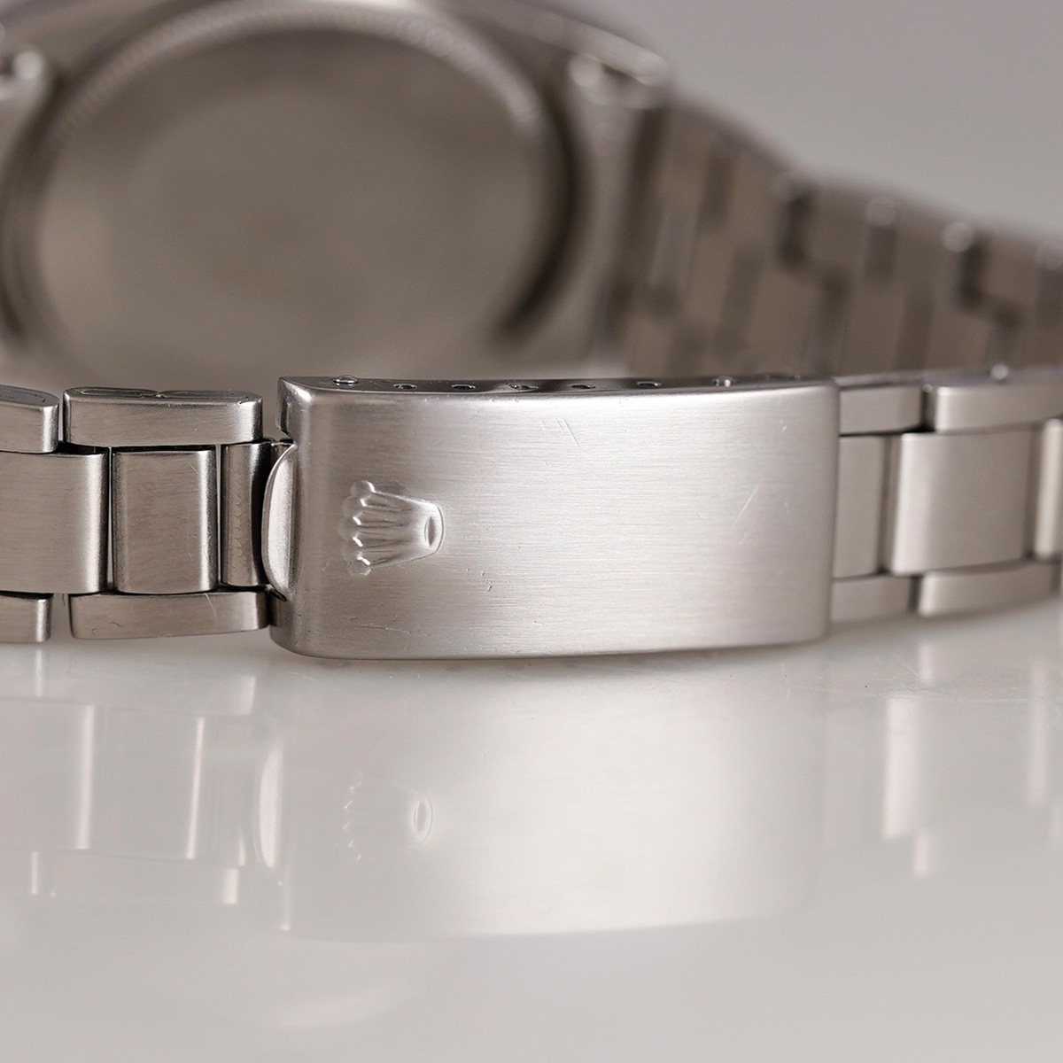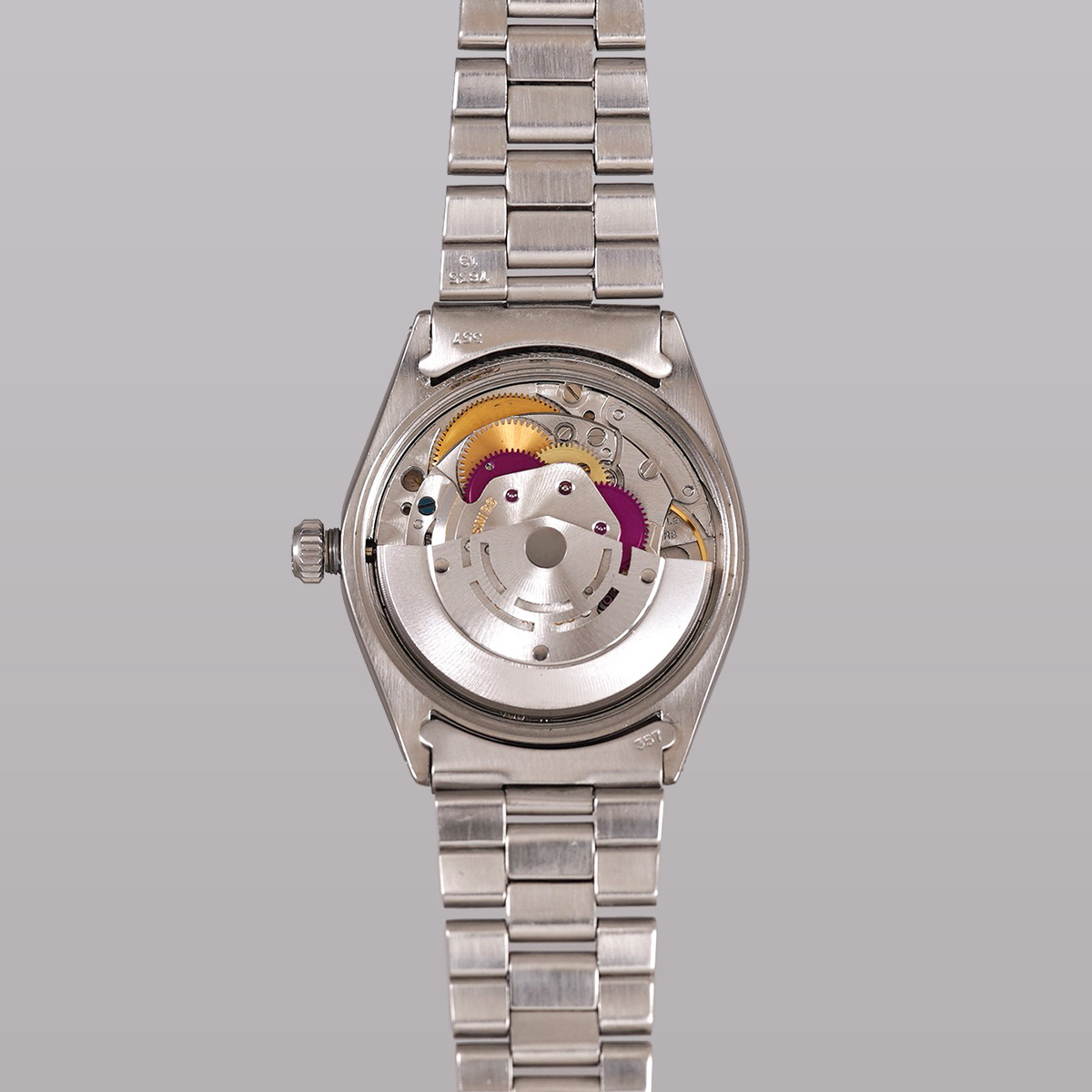 現存する最古のペットネームであるロレックスの自動巻モデル、シルバーダイヤルのエアキングになります。 サンバースト状のシルバーダイヤルは気になるような痛みも無くコンディション良好です。 シンプルな定番モデルなので、老若男女問わず、オンオフ問わず全てのスタイルにマッチする優れもの。 エントリーモデルとしてはもちろん、セカンドモデルとしてもおすすめのモデルです。 人気の所以が分かります。 時計本体(シリアルナンバーから1973年製)に年式の整合性の取れた、FF357 / 7835.19(年式刻印無し!が正解◎です) ロレックス純正.巻きタイプの3連ブレスを装着(13コマのフル駒:腕周り〜20.5cm程まで装着可能)。分解掃除を済ませ日差15秒程で稼働しております。 | |