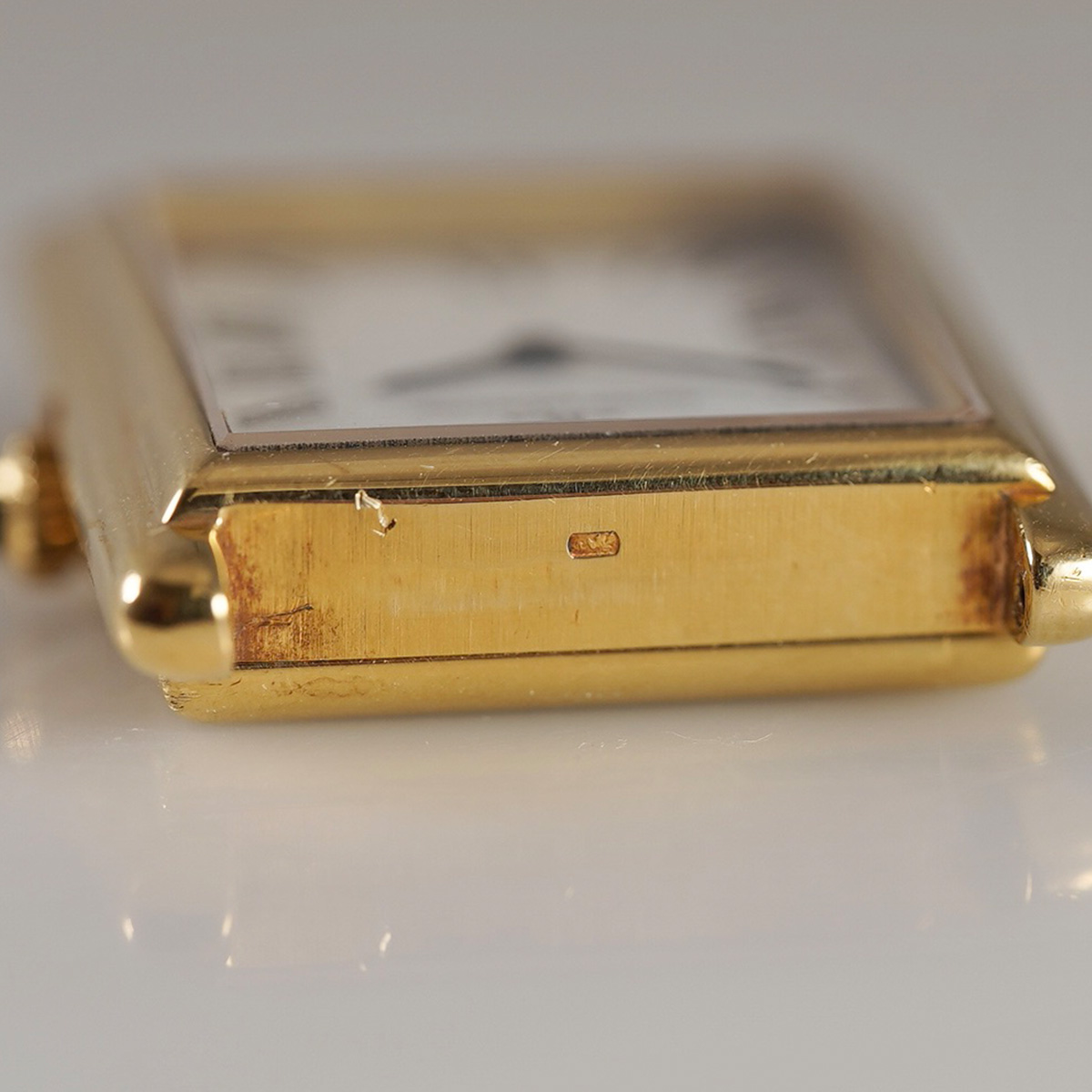 | Model | K18YG レクタンギュラ ホワイトローマンダイヤル Ref.6029 手巻き Cal.841 尾錠付き 1970年代製 |
