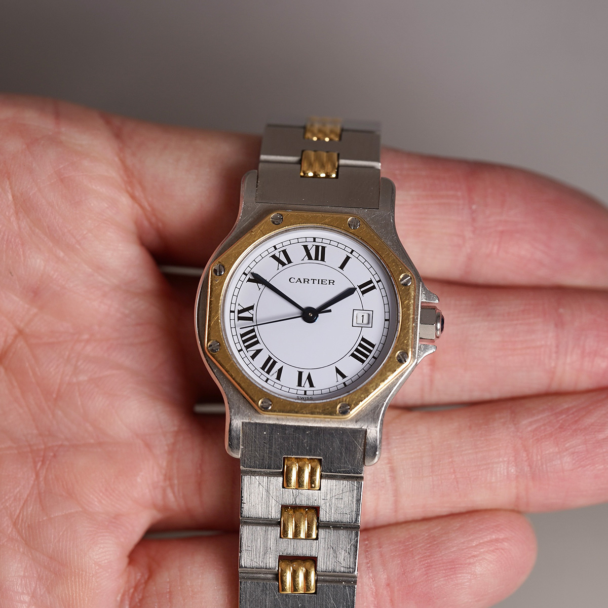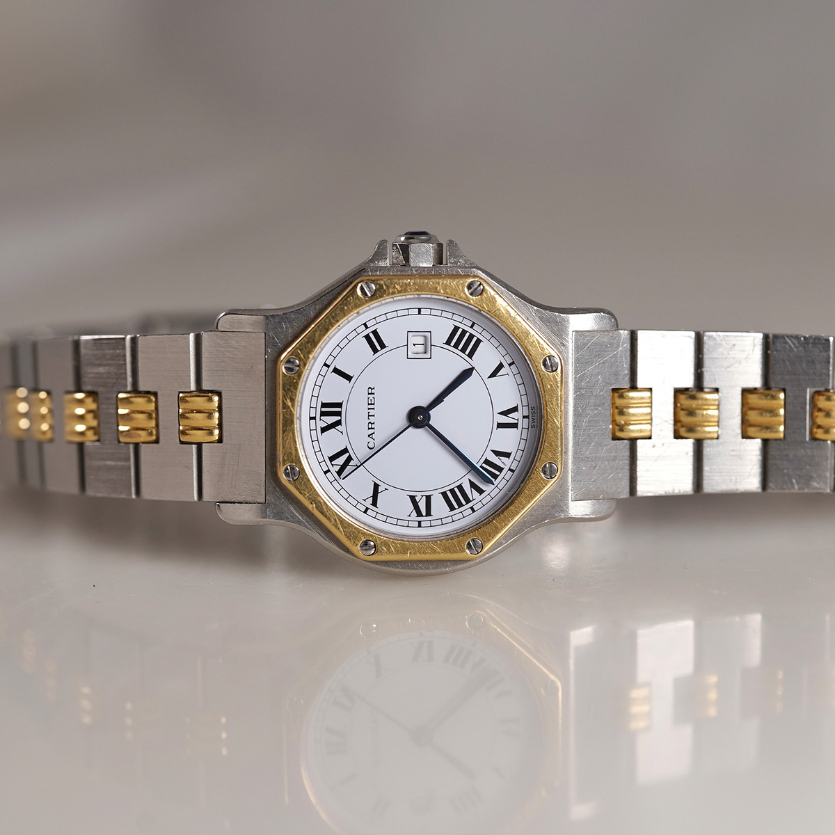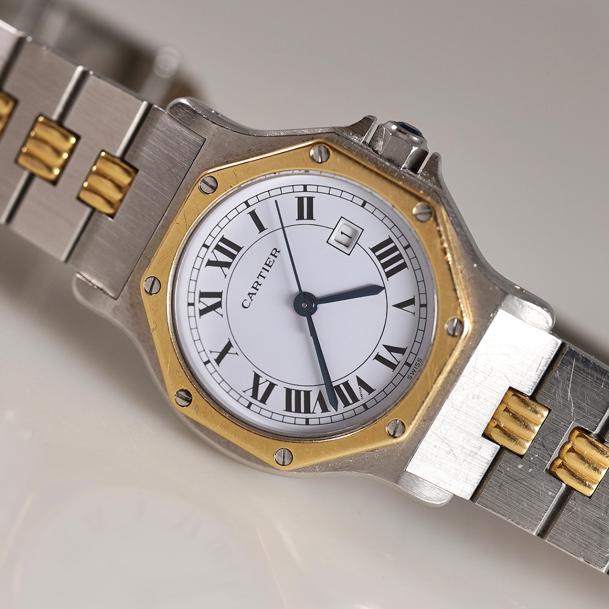 | Model | サントス オクタゴン LMサイズ Ref.2966 YG x SS ツートンモデル ゴドロンブレス 自動巻 1980年代製 |