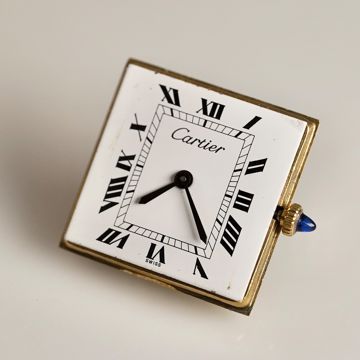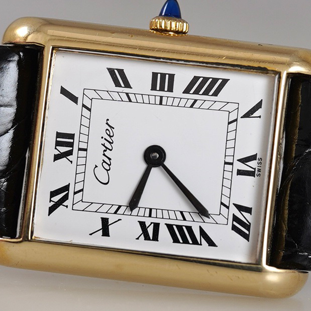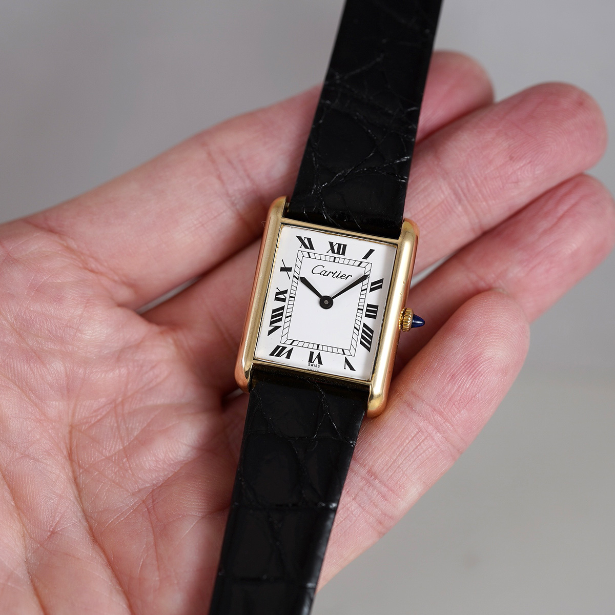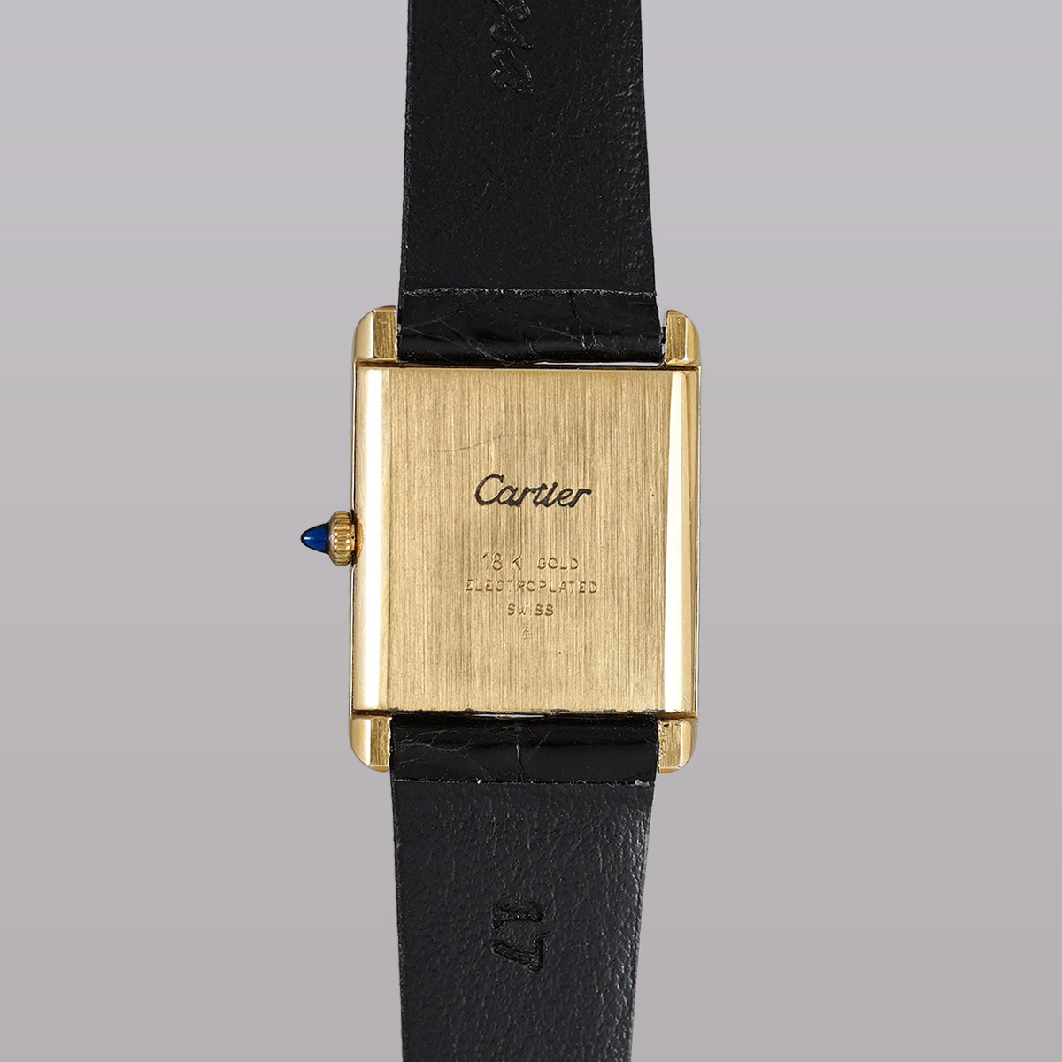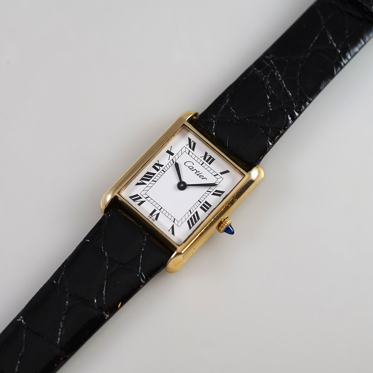 誕生からすでに100年以上、永遠に作り続けられるCARTIERの名作タンク。その歴史の中で、1970年代に始まるディフュージョンラインであるMUST de TANK(マスト タンク)以前に製造された、通称「プレマスト」です。 外装ケースは18金張り仕様で、ダイヤルに「must de」表記が入らないホワイトローマン仕様。 ヒビ割れしやすいダイヤルは、少々の汚れは見られますが目立つヒビ割れは見られない良好なコンディション。 針は黒色になり文字盤のローマン字とマッチしています。 リューズは当時のカボションが残り、欠けや損傷のない良好な状態。 黒のワニ革ベルトをセレクト。当時の純正尾錠付き。分解掃除済みで日差20秒程度で稼働しています。 | |