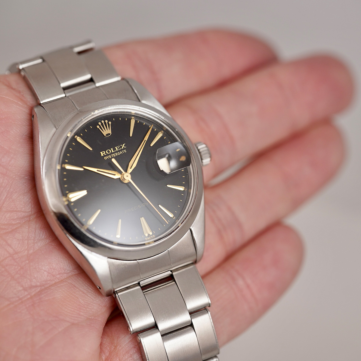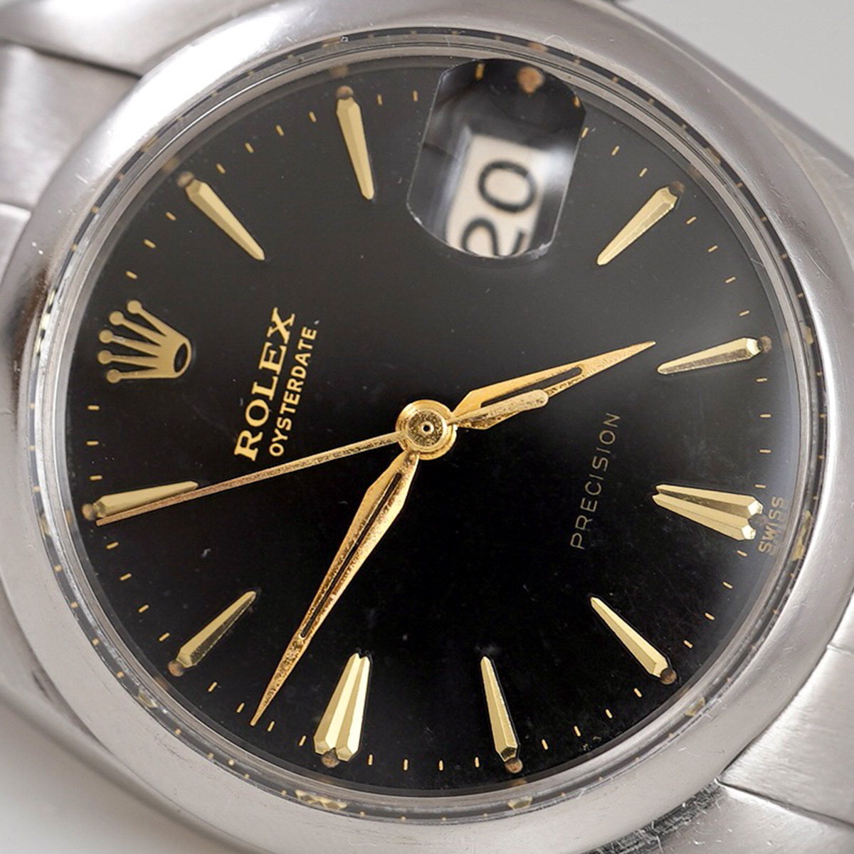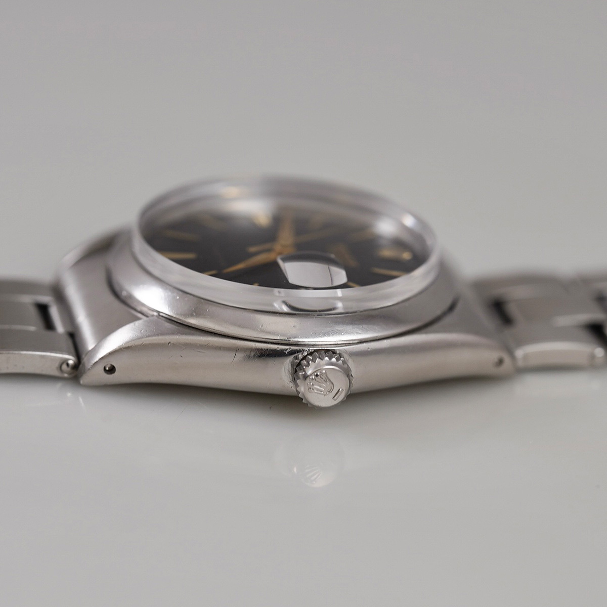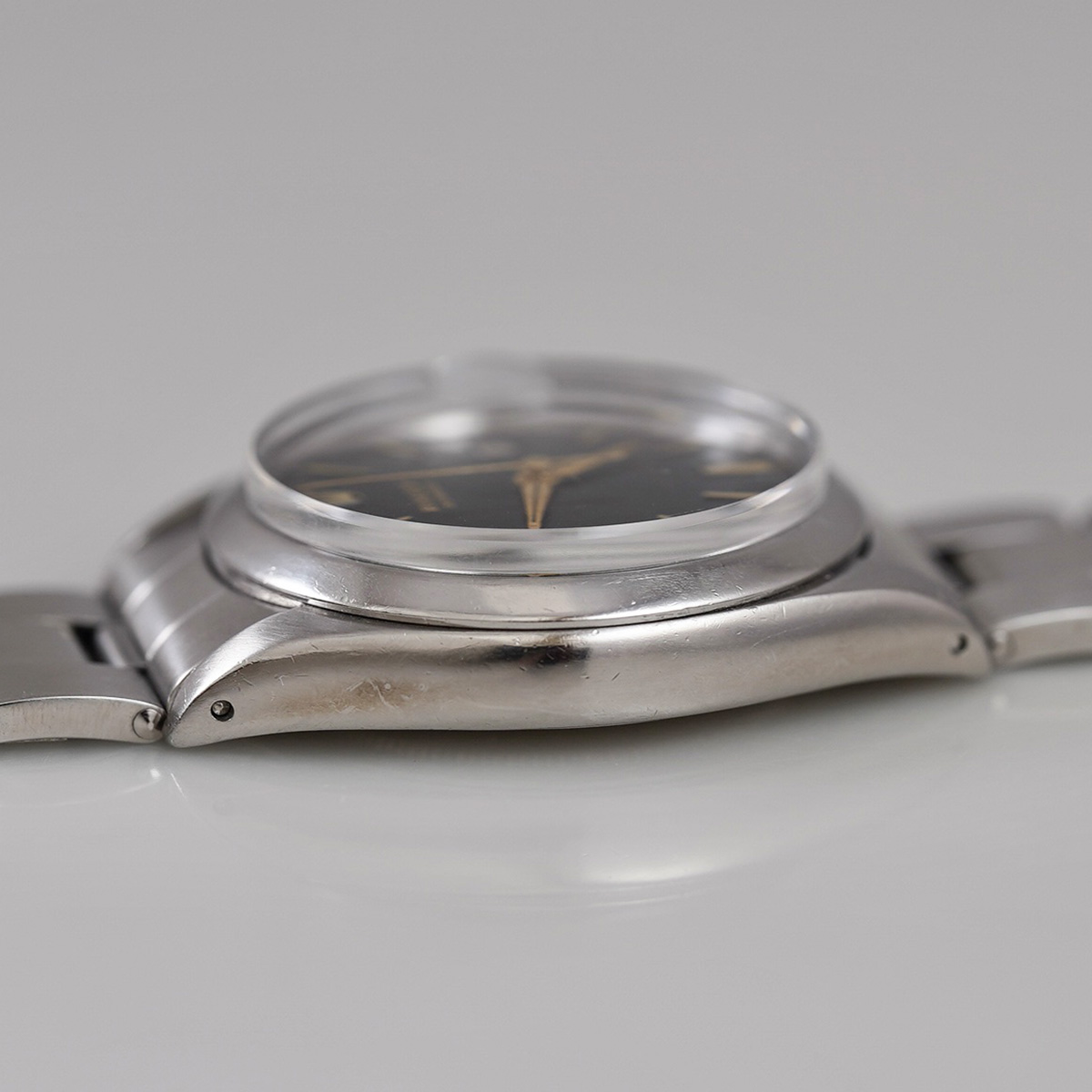 | Model | オイスターデイト ブラックミラーダイヤル ゴールドインデックス Ref.6694 リベットブレス 1960年代製 手巻き |