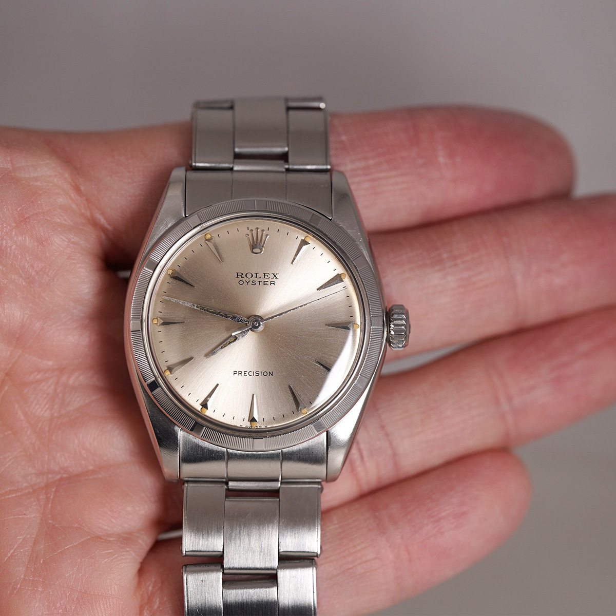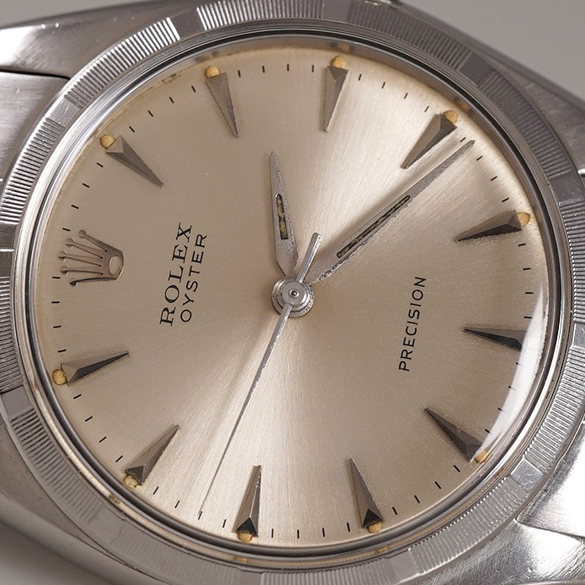 | Model | オイスター Ref.6427 エンジンターンドベゼル エイジングダイヤル 1960年代製 アルファ針 リベットブレス付き 手巻き |